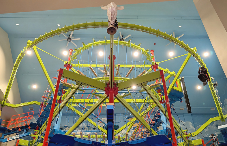 Jacob’s High Flying Adventure is the name of the new ropes course located inside the Bavarian Inn in Frankenmuth. As part of the major expansion of the hotel, which included the construction of one of Michigan’s largest indoor waterparks, RCI Adventure Products installed a 3-level Sky Trail® ropes course in the fall of 2024. The course features a 90-foot curved Sky Rail® zip rail and has 3 adjacent Clip ‘n Climb climbing walls. The course is located between the new waterpark and the existing family entertainment center, which features mini-golf and arcades.